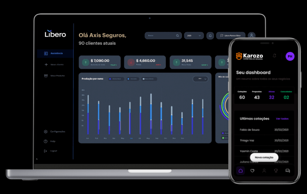 Gerencie clientes, contratos, apólices e comissões em nosso painel de gestão. Tudo de forma simples e intuitiva.