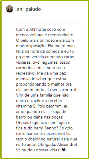 Veja abaixo os depoimentos de pessoas que já estão oferecendo Alimentação Natural (AN) e como ela transformou a vida não só de seus cães como a dos próprios tutores!